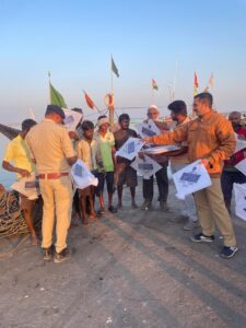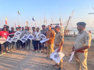 કોસ્ટલ સિક્યુરિટી વિભાગના પોલીસ મહાનિરીક્ષક પી.એલ. માલ તથા પોલીસ અધિક્ષક સુબોધ માનકરની સુચના મુજબ માછીમારોની જાગૃતિ અંગે ફીશરમેન અને ફીશરમેનના પરીવારમાં ફીશીગ દરમ્યાન ધ્યાનમા રાખવાની સુચનાના બેનર સાથેના પતંગોનું વિતરણ કરવામાં આવ્યું હતું.