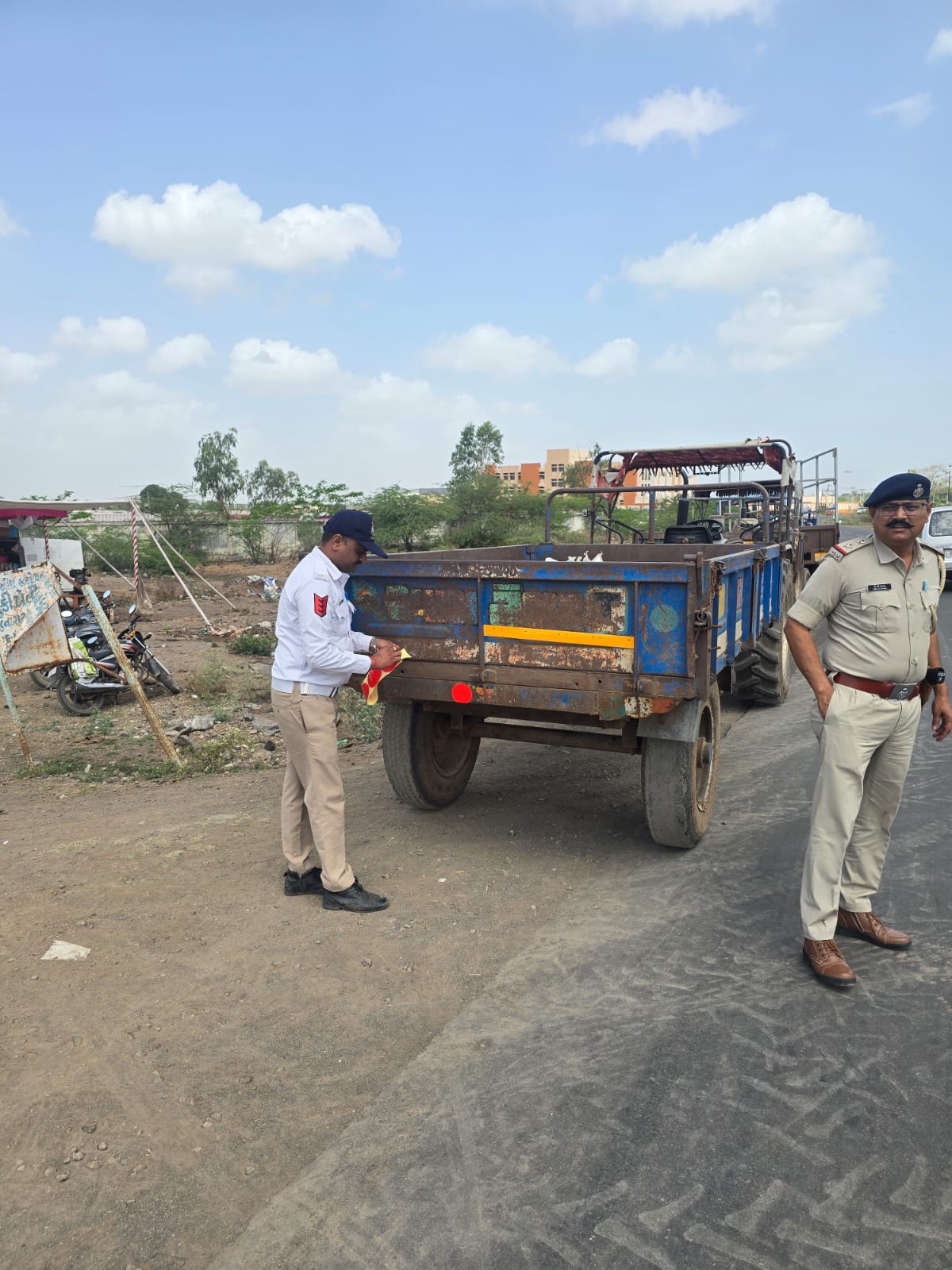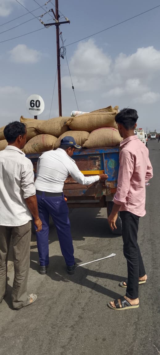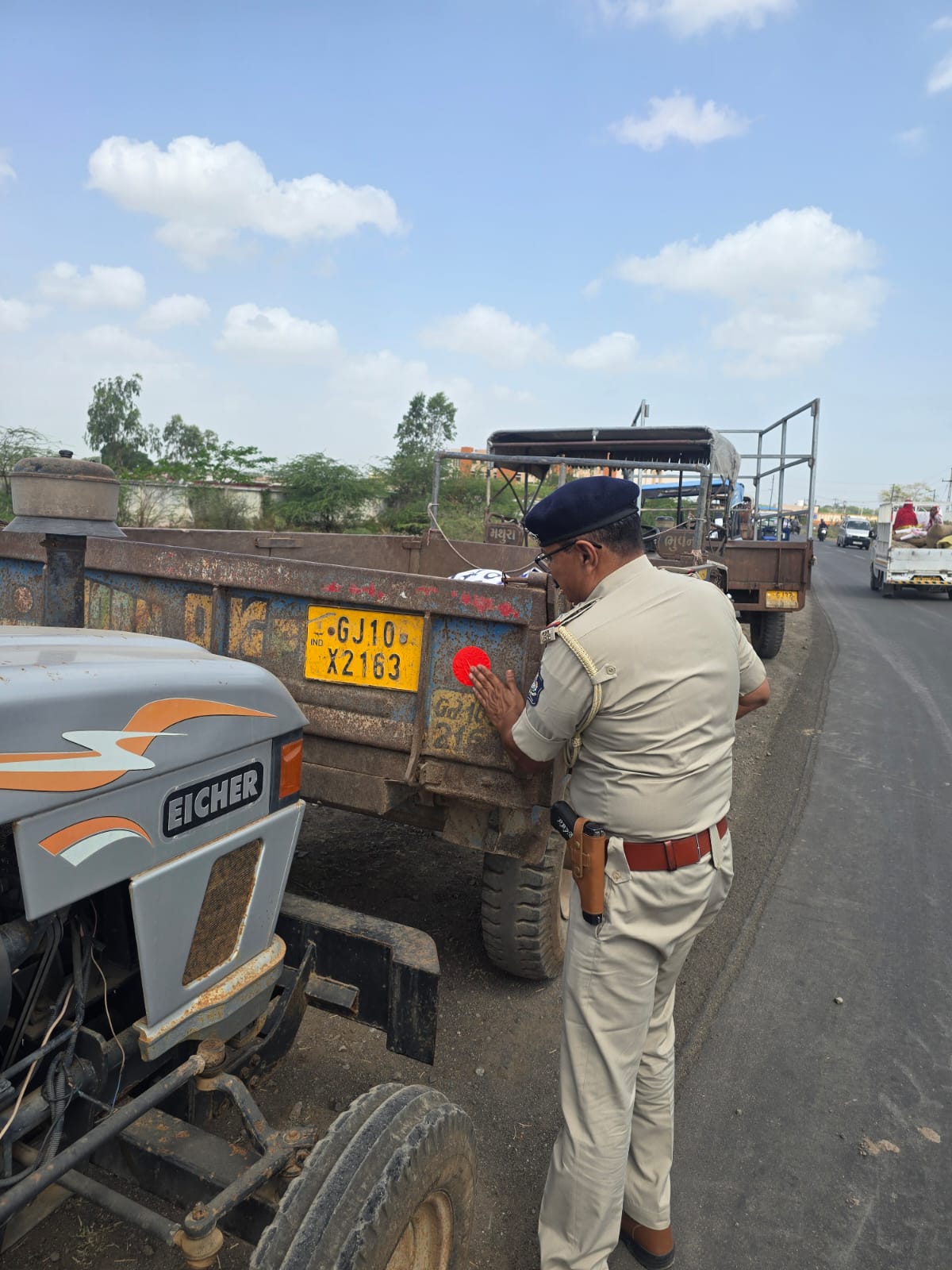 ખંભાળિયા વિસ્તારમાં રાત્રિના સમયે હાઈવે પર દોડતા વાહનો તેમજ ટ્રેક્ટર ટ્રોલી જેવા બેક લાઇટ વગરના વાહનોના કારણે કોઈ અકસ્માત ન સર્જાય તે હેતુથી દેવભૂમિ દ્વારકા જિલ્લા પોલીસ વડા જયરાજસિંહ વાળાની સૂચના મુજબ ડીવાયએસપી મીત રુદલાલના માર્ગદર્શન હેઠળ ટ્રાફિક પોલીસ દ્વારા જુદા જુદા વિસ્તારોમાં ટ્રેક્ટરની પાછળ રેડિયમ રિફ્લેક્ટર લગાવવામાં આવ્યા હતા. આ માટે જિલ્લા ટ્રાફિક વિભાગના પી.એસ.આઈ. જે.બી. જાડેજા તથા તેમની ટીમ દ્વારા અહીંના દ્વારકા હાઈવે માર્ગ પર ખેડૂતોના ટ્રેક્ટર ટ્રોલીમાં અકસ્માત નિવારી શકાય તે હેતુથી રેડિયમ રિફ્લેક્ટર લગાવી અને એક આવકારદાયક પગલું ભરવામાં આવ્યું હતું.