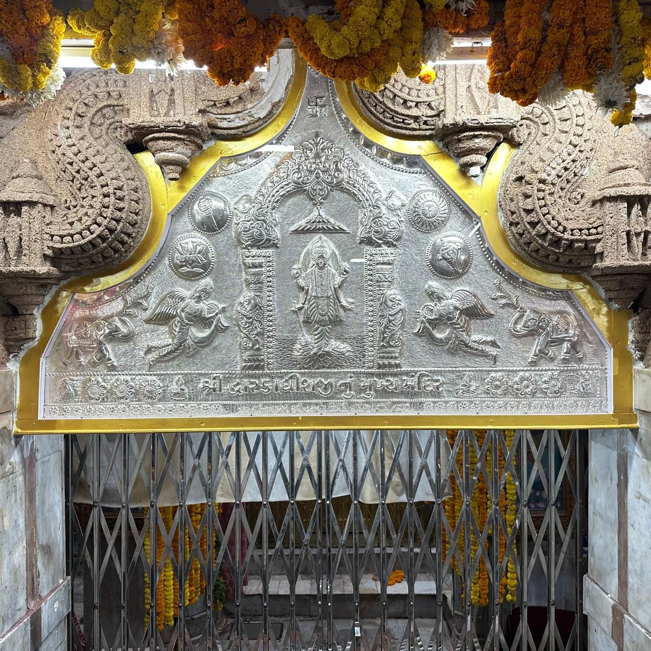 યાત્રાધામ દ્વારકાના સુપ્રસિદ્ધ જગતમંદિરમાં દર વર્ષે ભકતજનો દ્વારા આસ્થા સાથે સોના-ચાંદી સાથેના આભુષણો અને અન્ય કિંમતી ચીજવસ્તુઓ શ્રીજીના ચરણોમાં અર્પણ કરી કૃતજ્ઞતાનો ભાવ પ્રગટ કરવામાં આવે છે. આજરોજ ગાંધીનગરના રાંધેજ ગામના સ્વ. શકુંતલાબન રવિન્દ્રકુમાર ત્રિવેદી પરિવાર દ્વારા જગતમંદિરના ગર્ભગૃહમાં આવેલી દાનપેટી પર ચાંદીની 20 ગેજ સીટ પર એમ્બોઝ કરેલી અને અદભૂત હસ્તકલા સાથે કલાત્મક રીતે મઢી અર્પણ કરવામાં આવી હતી.
