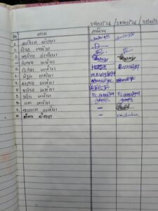 જવાબદારી સોંપાયેલા વિદ્યાર્થીઓની યાદી (સહી સાથે):