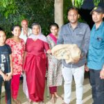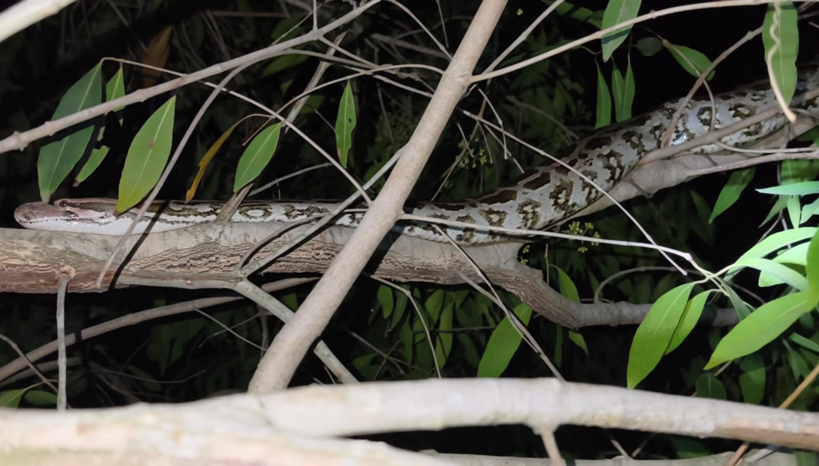 ભાણવડ તાલુકાના ભરતપુર ગામ નજીક આવેલી એક વાડીમાં રાત્રિના સમયે એક અજગર દેખાતા ભયનો માહોલ સર્જાયો હતો. મહત્વની બાબત તો એ છે કે અહીં થોડા દિવસો પહેલા એક મરણ પ્રસંગ હોવાથી પરિવારના સભ્યો અને સંબંધીઓની હાજરી વધુ હતી. જેના કારણે લોકોમાં ભારે ગભરાટ ફેલાયો હતો. આ સમયે વાડી માલિકે તુરંત ભાણવડના રેસ્ક્યુઅર અશોકભાઈ ભટ્ટનો સંપર્ક કર્યો હતો. ટીમ પહોંચે તે પહેલા અજગર રહેણાંક મકાન પાસેના વૃક્ષ પર ચડી ગયો હતો.
