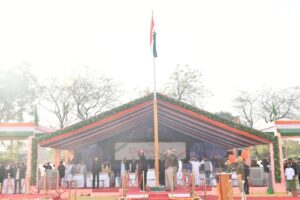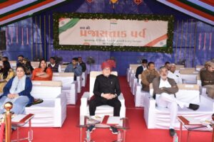 આપણુ બંધારણ આપણા ભારતના લોકોથી શરૂ થાય છે. વી ધ પીપલ ઓફ ઇન્ડિયા, આપણે ભારતના લોકો જ આની તાકાત છીએ. આપણે જ તેની પ્રેરણા છીએ અને આપણે જ તેનો ઉદેશ્ય છીએ. હું જે કઇ પણ છું તે સમાજ માટે છું, દેશ માટે છું. આ જ કર્તવ્યભાવ આપણી પ્રેરણાનો સ્ત્રોત છે. આપણે સૌ મળીને ભારતના એક જવાબદાર નાગરિક તરીકે આપણા કર્તવ્યોનું પાલન કરીએ. ગણતંત્ર દિવસને માત્ર સંવિધાન લાગુ કરવાના રૂપમાં જોવા કરતા સંવિધાનમાં દર્શાવેલા કર્તવ્યો, અધિકારો અને સંરક્ષણો સાથે જોડવો જોઇએ. 26 મી જાન્યુઆરી, આ બસ એક તારીખ નથી. દેશની આત્મનિર્ભરતા, સ્વતંત્રતા અને લોકતંત્રના પ્રતિ આપણી પ્રતિબદ્ધતાનું પ્રતીક છે. આપણા ભારતનું સંવિધાન દુનિયાનું સૌથી મોટું લેખિત સંવિધાન છે. સંવિધાને દરેક નાગરિકને સમાનતા, સ્વતંત્રતાઅને ન્યાયનો અધિકાર આપ્યો છે. સાહસિકતા, અહિંસા, સત્યપ્રિયતા, ન્યાયપ્રિયતાએ ગુજરાતની પ્રજા અને ગુજરાતની ધરતીની આગવી ખાસિયત રહી છે અને વિશ્વભરમાં તેની પ્રતિષ્ઠા છે. અહિંસા એ કાયરતા નથી અને તેની શક્તિ કેટલી પ્રબળ હોય છે તે પણ આ જ ધરતી, અહીંના લોકોએ પૂરવાર કરી આપ્યું છે. નાગરિકોમાં રહેલી સુષુપ્ત શક્તિઓને જાગૃત કરી તેને રચનાત્મક વિકાસની દિશામાં કામે લગાડી સહિયારા પુરૂષાર્થ દ્વારા સર્વાંગી પરિવર્તન આપણે સાધવું છે. તેમ તેમણે વધુમાં ઉમેર્યું હતું. હાલના સમયમાં સ્વદેશી વસ્તુઓના ઉપયોગ થકી આત્મનિર્ભર ભારતના સંકલ્પને સાકાર કરવા માટે આપણે સૌએ સ્વદેશી વસ્તુઓનો ઉપયોગ કરવો જોઈએ અને રાષ્ટ્રને આર્થિક રીતે મજબૂત બનાવવામાં યોગદાન આપવું જોઈએ.