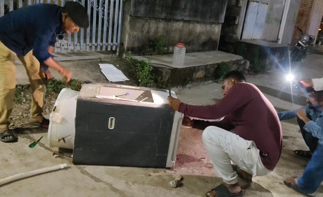 ભાણવડના રણજીતપરા વિસ્તારમાં એક ઘરમાં વોશિંગ મશીનની અંદર ઝેરી કોબ્રા સાપ ઘૂસી જતાં અફરાતફરી મચી ગઈ હતી. મશીનના આંતરિક ભાગમાં સાપ છુપાયેલો હોવાથી, વોશિંગ મશીનના ટેકનિશિયનને બોલાવી મશીનના પાર્ટ્સ ખોલવાની ફરજ પડી હતી.
