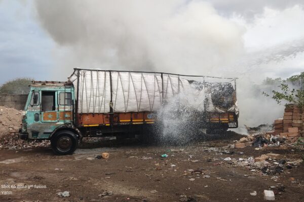 ખંભાળિયા નજીક મગફળીનો ભૂક્કો ભરેલા ટ્રકમાં ભીષણ આગ